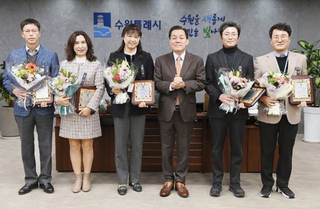 이재준 수원시장은 2일 집무실에 기업일자리정책과 일자리창출팀 김정옥 팀장, 지역경제과 전통시장경영팀 오미숙 팀장, 재난대응과 사회재난팀 선병옥 팀장, 도시계획과 도시계획팀 윤대원 팀장, 혁신민원과 김남현 베테랑팀장 등 수상자 5명에게 표창패를 수여했다.