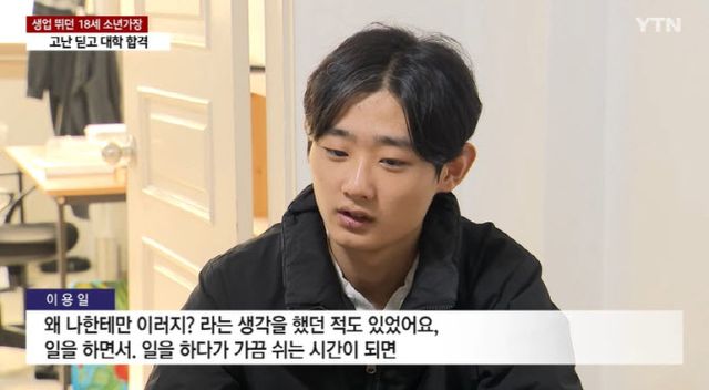 당시 16세였던 용일군은 세 식구의 생계를 책임지기 위해 일터에 나섰다. 중학교 2학년 때부터 택배 배달, 식당 아르바이트, 야간 경비까지 하루에 15시간을 꼬박 일했다. 이 외에도 선팅 업체, 물류 창고 관리, 편의점 알바 등 어린 나이에 할 수 있는 일을 해왔다.