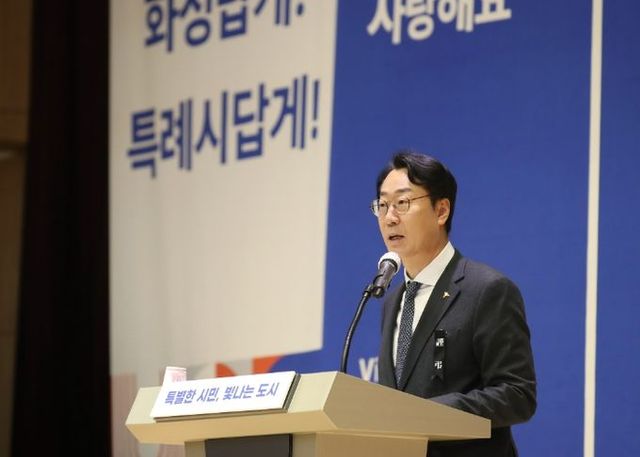 [와이뉴스] 정명근 화성특례시장이 2일 시청 대강당에서 개최된 시무식에서 ‘특별한 시민, 빛나는 도시’라는 화성특례시의 슬로건을 선포하고 2025년 화성특례시 비전을 밝혔다.