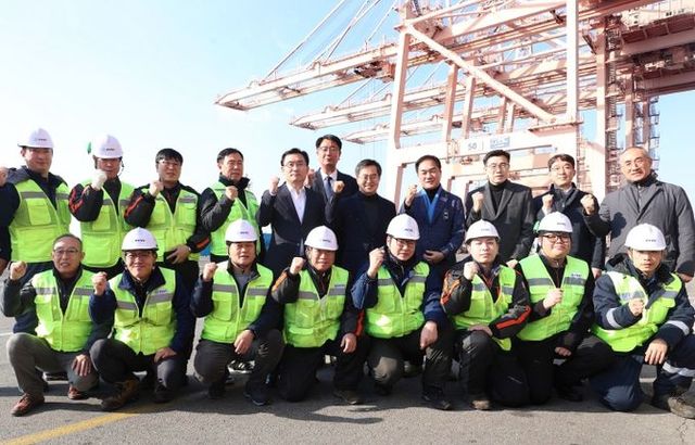 [와이뉴스] 김동연 경기도지사와 정장선 평택시장이 지난 1월 1일 평택항 첫 수출 현장을 방문해 항만노동자와 관계자들을 격려했다.