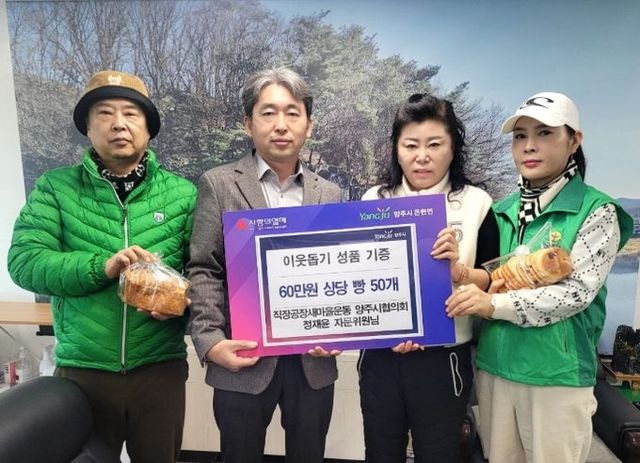 [와이뉴스] 직장·공장새마을운동 양주시협의회는 지난 2일 새해를 맞아 지역 사회 온정을 전하기 위해 은현면에 빵 50개(60만원 상당)를 기부했다고 밝혔다.