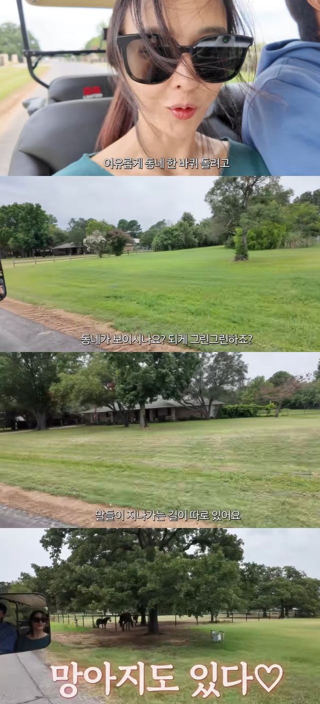 온통 초록으로 가득한 나무와 들판이 펼쳐진 동네는 한없이 편안함을 자아냈고, 커다란 나무 아래 말들이 모여 있는 모습도 보였다. 이에 하원미는 "저희 동네에는 말들이 지나가는 길이 따로 있다. 찐 텍사스다. 말 키우고 그러는 곳이다"고 전했다.