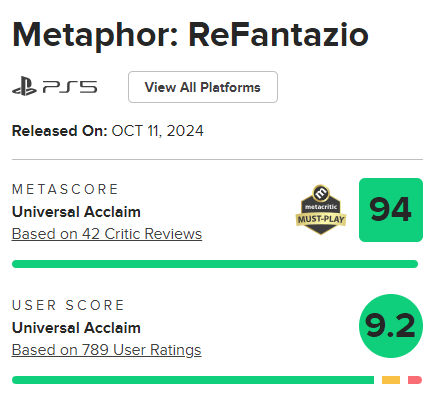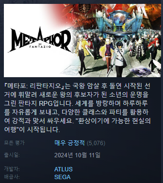 올해 고티 꽤 치열할듯(메타포 발매전에 이미 고티 후보 발표한 골든 조이스틱은 파판 리버스 VS 아스트로봇 2강 예상)