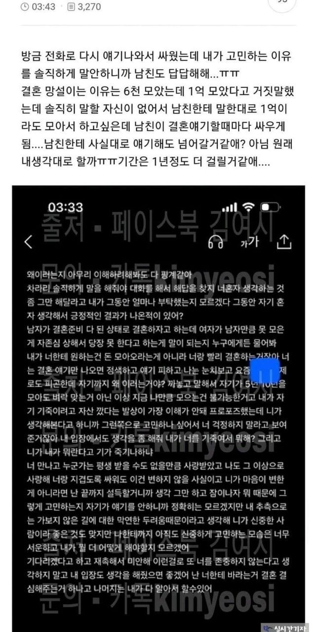 남친이 결혼얘기 하는데 거짓말 때문에 고민인 여시