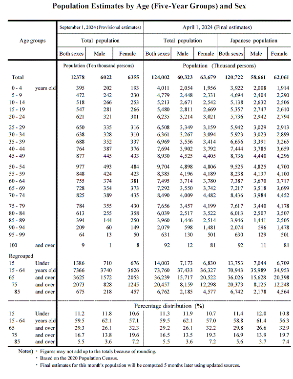 2024년 4월 1일 기준으로 일본의 내국인 인구는 1억 2072만명