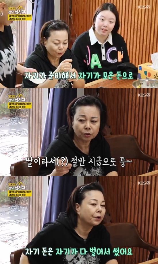 이에 박원숙이 "어떻게 돈을 모았냐"라고 묻자 이경애는 "어릴 때 금반지 같은 걸 다 통장에 넣어뒀다. 딸 이름으로 어릴 때 다 넣어두고 모아보라고 했다. 필요할 때 찾아 쓰라고 했다. 우리 가게에서 일하게 하고 시급 쳐줘서 그 돈도 넣어줬다"라며 남다른 경제 교육 방식을 설명했다.