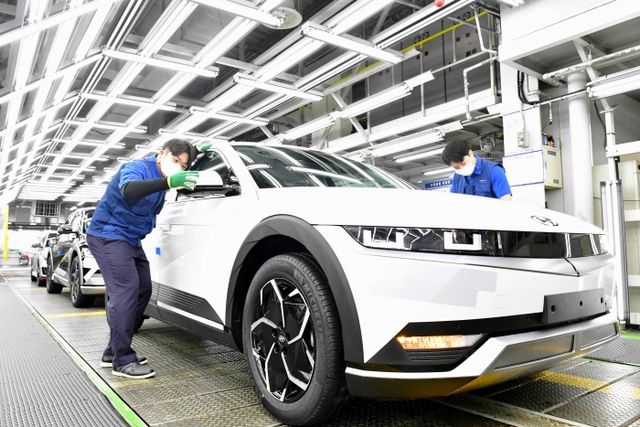 현대자동차 울산1공장에서 근로자들이 아이오닉 5를 생산하고 있다. 현대차 울산1공장은 국내 최초 독자 모델 '포니'가 탄생한 역사적 공간이다. 사진=현대자동차 제공