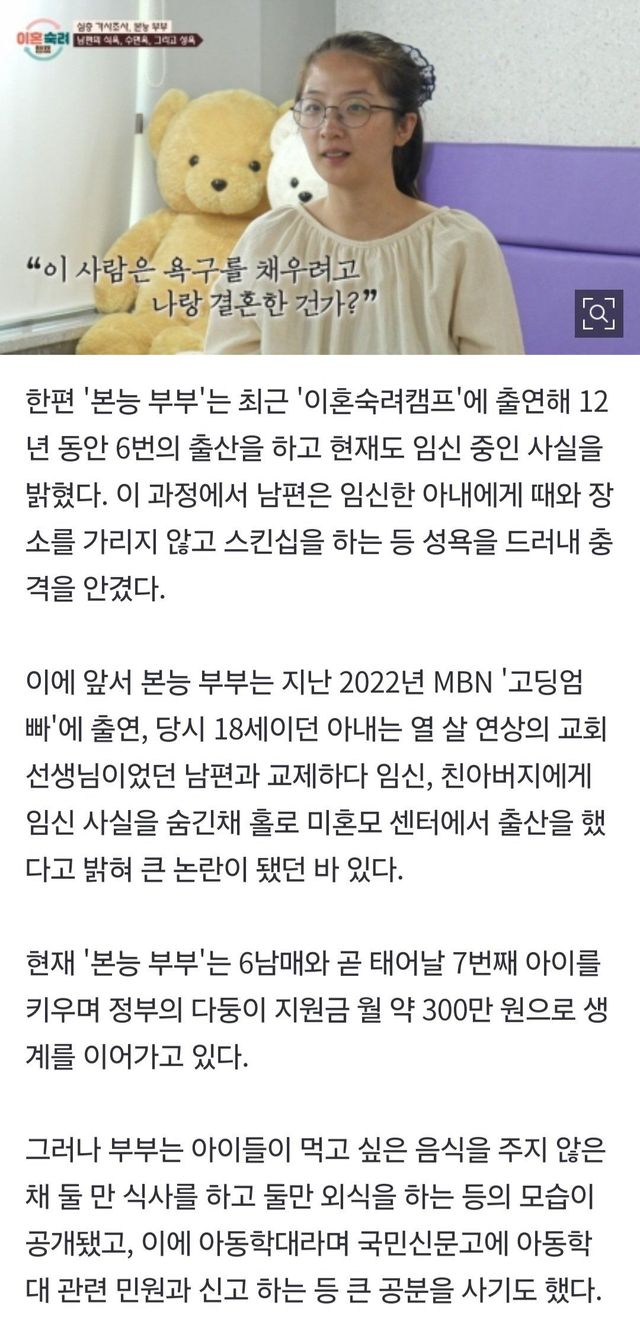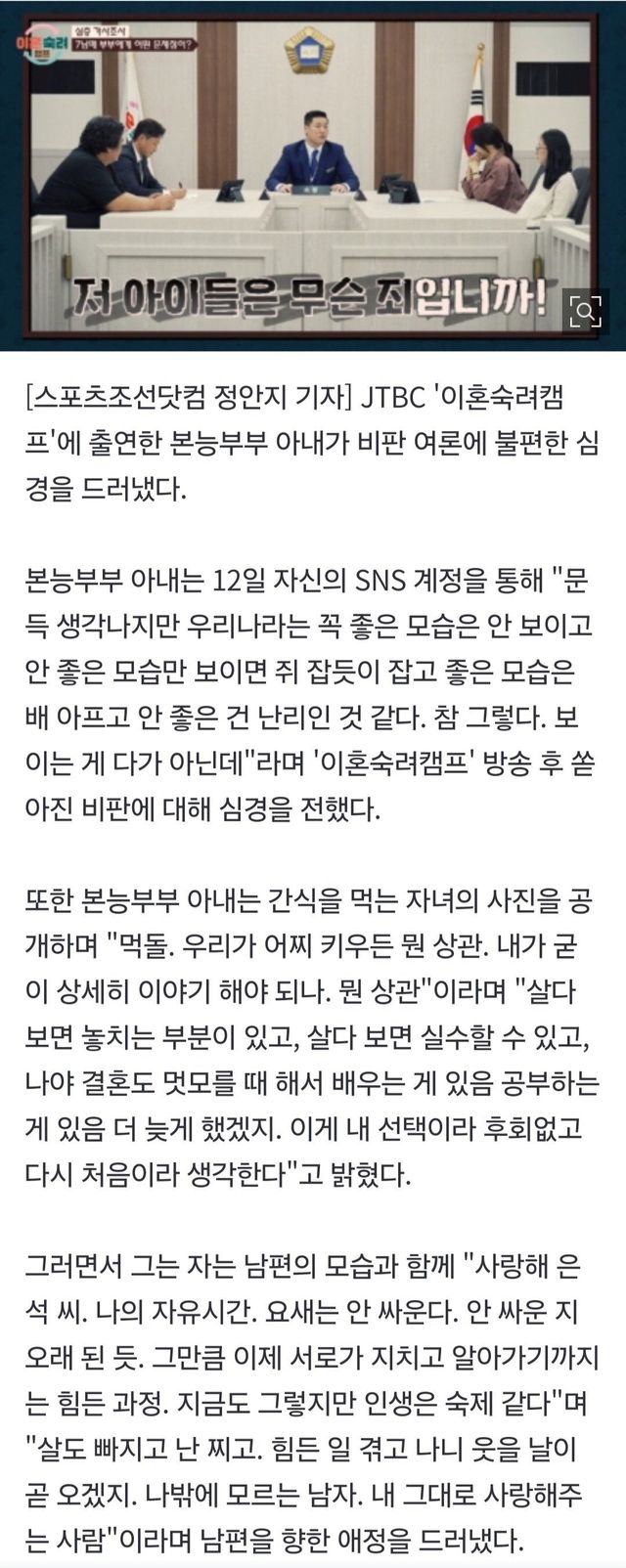 본능부부 아내 비판 여론에 불편 심경