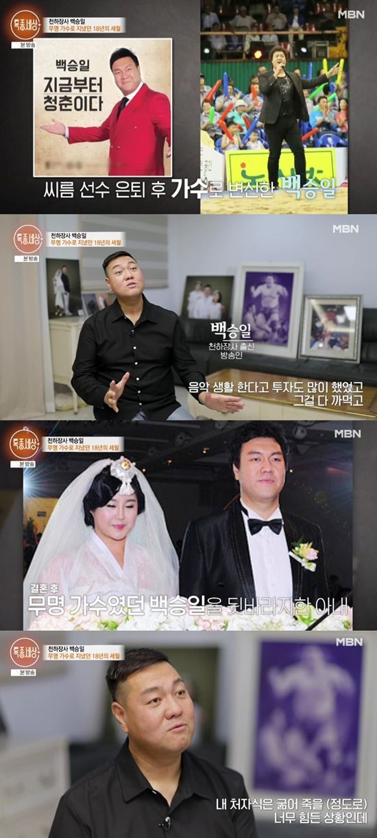 백승일은 "결혼하고 나서 방송이고 뭐고 섭외가 들어오질 않더라. 자존심이 뭔지. 백승일 이름이 뭐라고"라며 "처자식은 굶어 죽을 정도로 힘든 상황 아닌가. 최선을 다해서 10원이라도 더 벌어서 처자식 먹여 살릴 생각을 했어야 했는데 내가 철이 없었다"고 후회를 드러냈다.