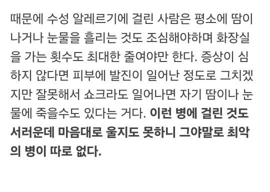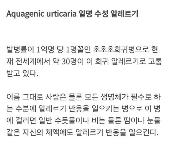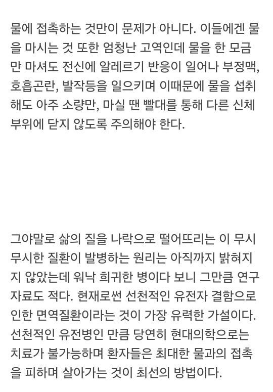 물에 알러지가 생기는 최악의 병명