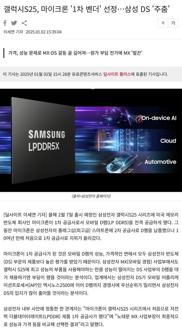 마이크론 메모리에게 밀리는 삼성 메모리 ㄷㄷ