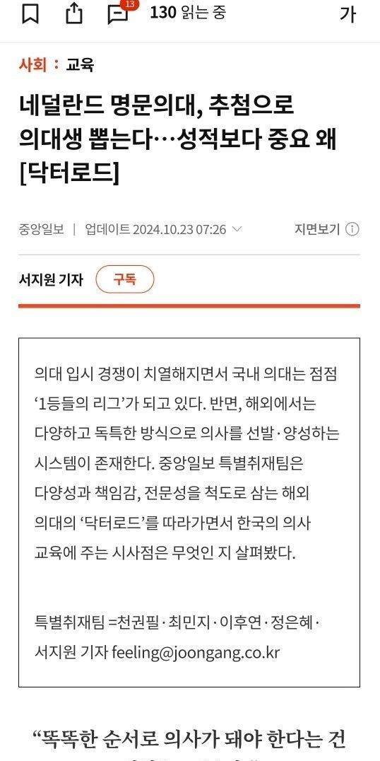 네덜란드에서 추첨식으로 의대생을 뽑는 이유