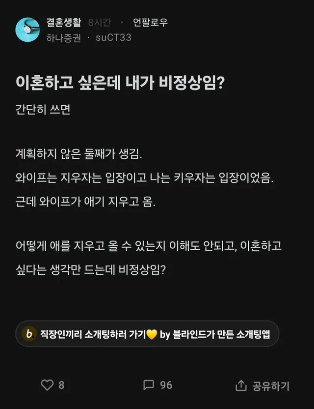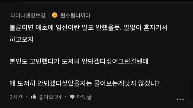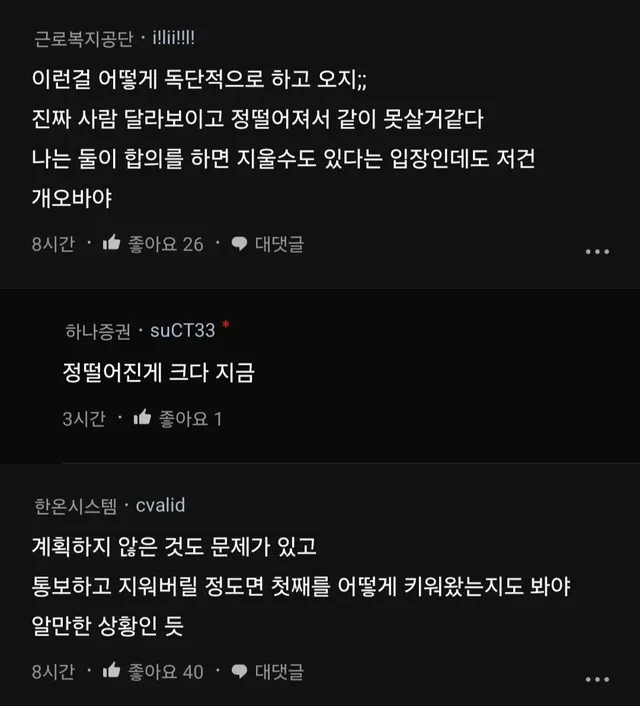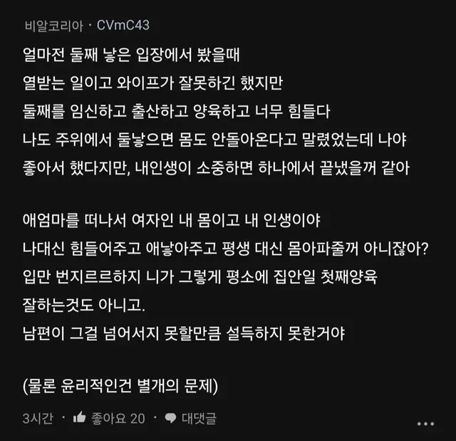 와이프가 독단으로 둘째 지우고 와서 이혼 마려운 남편
