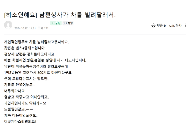 1박 2일 동안 꽁짜로 썼으면 기름 채워주는 게 예의 아닌가? 직급떠나서 말이야...