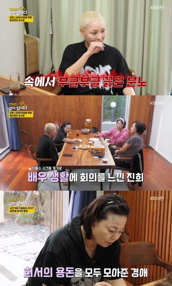 2일 방송된 KBS 2TV '박원숙의 같이 삽시다'(이하 '같이삽시다')에는 홍진희, 이경애와의 마지막 하루가 공개됐다.