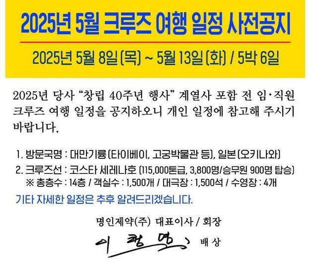 계열사 직원 포함 전직원 해외 크루즈 여행