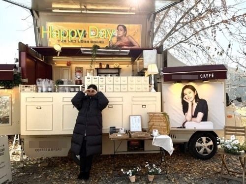손예진 역시 남편 현빈에게 커피차를 보낸 바 있다.