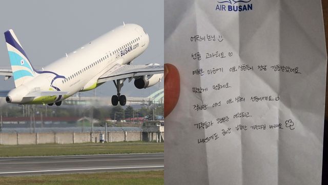 꼬마 승객에게 승무원이 건넨 편지. / 뉴스1