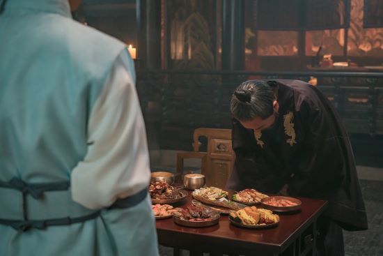 이어진 사진에서는 만찬을 앞에 두고 팽팽하게 대치하는 이은호와 천방주를 볼 수 있다.