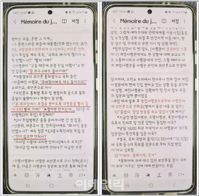 검찰 특수본은 이날 특전사 간부의 휴대폰 메모를 공개했다.