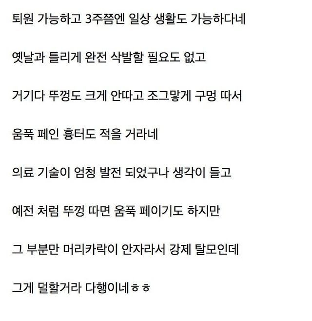의료기술의 발달로 과거보다 쉬운수술이 되었다고 함