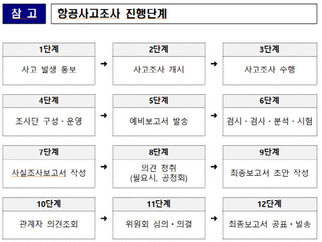 또 사조위는 음성기록장치(CVR)에서 추출한 자료를 음성파일 형태로 전환하는 작업을 완료하고 녹취록을 작성하고 있다. 파손된 비행기록장치(FDR)는 사조위측 조사관 2명이 미 교통안전위원회(NTSB)로 운반(6일 출발)해 자료를 인출할 계획이다.