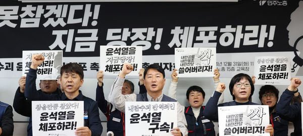 민주노총은 이날 오후3시 확대간부 결의대회를 시작으로 1박2일 윤 대통령 체포를 위한 집중 철야투쟁에 돌입할 예정이다.