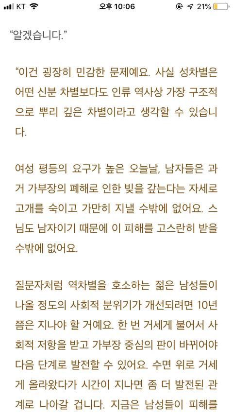남성 역차별에 대한 법륜스님의 생각