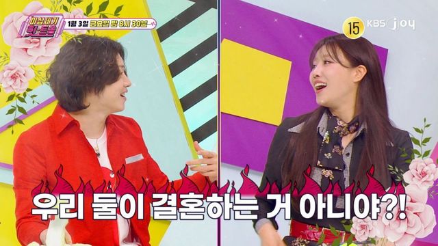 여기에 이미주는 “올해 인생에 있어 중요한 사람을 만나게 되며, 그 사람으로 인해 큰 빛을 보게 된다”, “새롭게 만나는 사람 중에 좋은 인연이 있다”, “결혼을 계획하는 이성이 있다면, 결혼의 시기도 비교적 좋은 해”라는 토정비결이 공개돼 눈길을 끌었다. 이에 김희철은 “우리 둘이 결혼하는 거 아니냐”며 흥분한다.