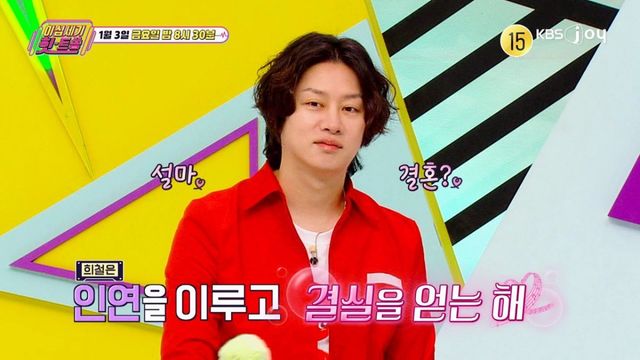 3일 방송되는 ‘KBS JOY 이십세기 힛-트쏭’에서 김희철은 “인연을 이루고 결실을 보는 해. 연인들은 결혼하기에 아주 좋은 해”라고 언급해 결혼에 대한 기대감을 높인다.