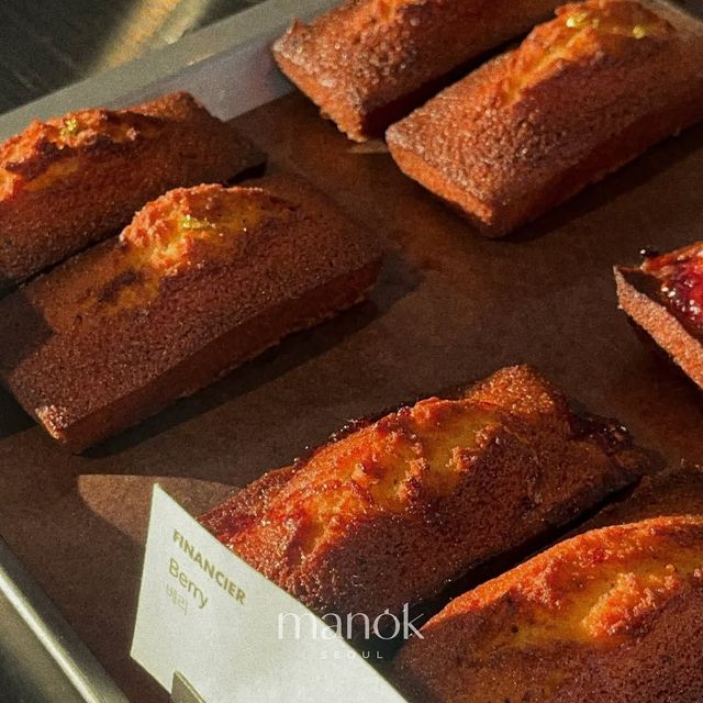 프리미엄 티 브랜드 ‘델픽’에서 전개하는 디저트 카페 마녹. 커피는 물론 차(TEA)와도 최상의 궁합을 자랑하는 이곳의 휘낭시에는 총 6가지 종류로 제공된다. 천연 발효버터의 고급스러운 풍미가 돋보이는 플레인 휘낭시에부터 재료 본연의 맛을 느낄 수 있는 페이스트가 들어간 피스타치오, 미나리 휘낭시에까지. 답례품으로도 인기인 휘낭시에 기프트 박스의 가격은 3만 8천원, 공식 웹사이트를 통해 구매 및 픽업예약이 가능하다.