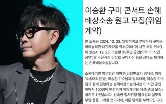 3일 이승환은 자신의 계정을 통해 구미 콘서트 손해배상소송 100명 원고 모집을 안내했다.