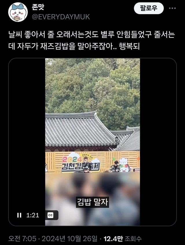 7. 김천 특산물이 자두인데 가수 자두가 와서 김밥 노래부름 ㅋㅋ