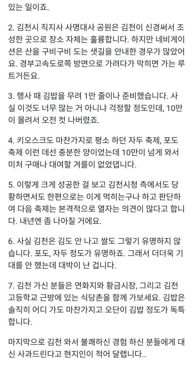1. 김천시에서 김밥축제를함(김밥이 유명한 도시아님)
