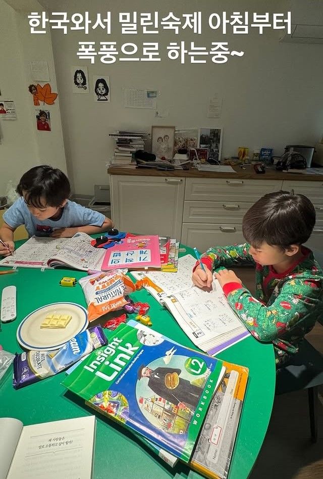 사진에서 윌리엄과 벤틀리는 '슈퍼맨이 돌아왔다(슈돌)' 하차 이후 몰라보게 훌쩍 큰 모습으로, 분주하게 밀린 숙제를 하고 있다.