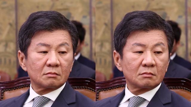 정몽규 대한축구협회 회장과 홍명보 축구대표팀 감독이 지난해 9월 4일 오전 서울 여의도 국회 문화체육관광위원회에서 열린 대한축구협회 등에 대한 현안질의에 출석해 자리해 있다. / 뉴스1