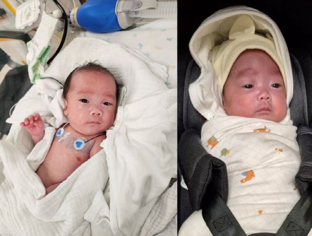 3일 서울성모병원에 따르면 오둥이 중 둘째 새찬이는 3.394kg, 셋째 새강이는 3.077kg 몸무게로 먼저 집에 가게 됐다.
