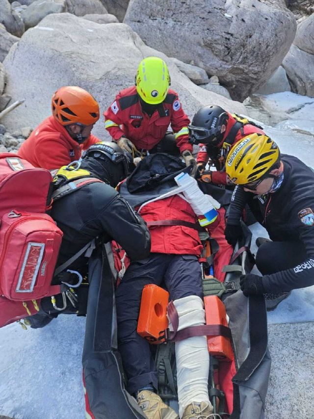 3일 소방당국 등에 따르면 이날 오후 1시8분께 강원 인제군 북면 용대리 수렴동 대피소 인근 상공에서 산림청 소속 공중진화대원 30대 A씨가 25m(아파트 8층 높이) 아래로 떨어졌다.