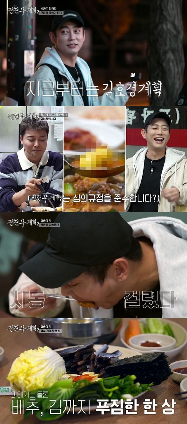 이후 두 사람은 다음을 기약한 채 헤어졌고, 다음으로 전현무는 발라드 가수 테이에게 전화를 걸었다. 곧장 테이가 사는 경기도 고양시로 넘어간 전현무는 테이에게 ‘김호경(테이 본명)계획’을 부탁했다. 테이는 “평상시 꼭 가보고 싶었던 곳이 있다”며 닭 요리 전문 맛집으로 그를 안내했다. 의외로 쉽게 사장님의 촬영 허락을 받아낸 두 사람은 이곳의 대표 메뉴인 ‘닭 내장탕’을 주문했다.