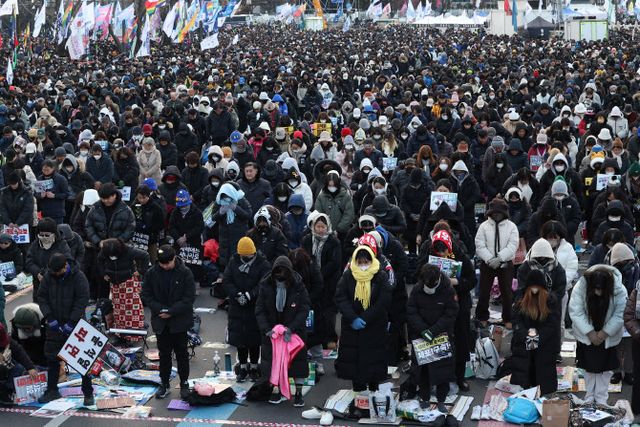 이들은 본격적 집회 전 대규모 묵념을 통해 희생자들의 명복을 빌었다. 일부 참석자들은 눈물을 보이기도 했다. 모자에 검정 근조리본을 단 강솔지(34)씨는 “제주항공 참사 이후 마음이 좋지 않아 이렇게 근조 리본을 달고 나왔다”며 “매주 집회에 왔었는데 오늘은 참사 이후 첫 집회라 마음이 좋지 않다”고 말했다.