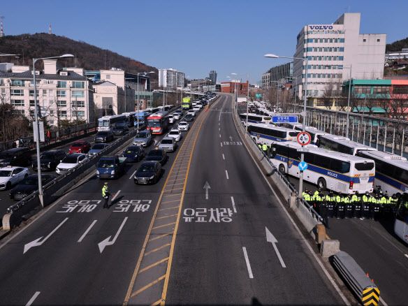 서울교통공사는 4일 오후 5시 21분부터 6호선 한강진역 상하선 열차 무정차 통과중이라고 밝혔다. 용산구청도 이날 관저 인근 대규모 집회로 인해 한남대로(한남오거리~북한남삼거리) 양방향을 통제하고 있다며 우회 통행해달라고 했다.