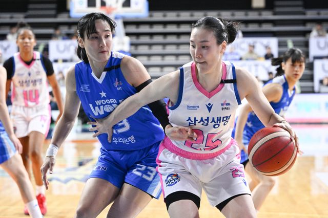 삼성생명은 4일 아산 이순신체육관에서 열린 하나은행 2024~25 여자프로농구 정규리그 원정 경기서 아산 우리은행을 65-59로 꺾었다. 삼성생명은 2연승, 우리은행은 2연패로 나란히 공동 2위(10승 6패)가 됐다.