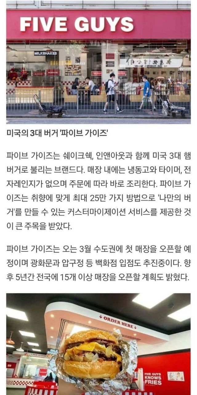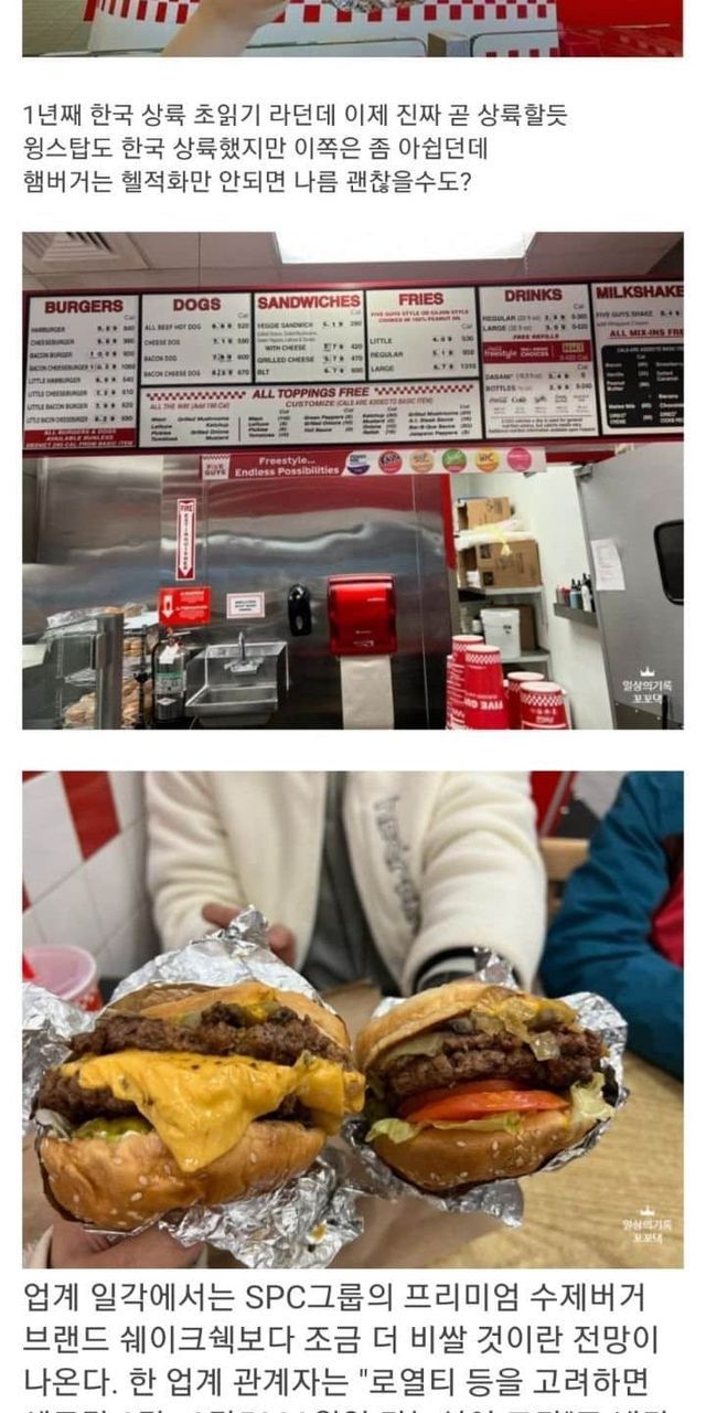 한국에 들어온다는 미국 3대 버거 파이브 가이즈 예상 가격