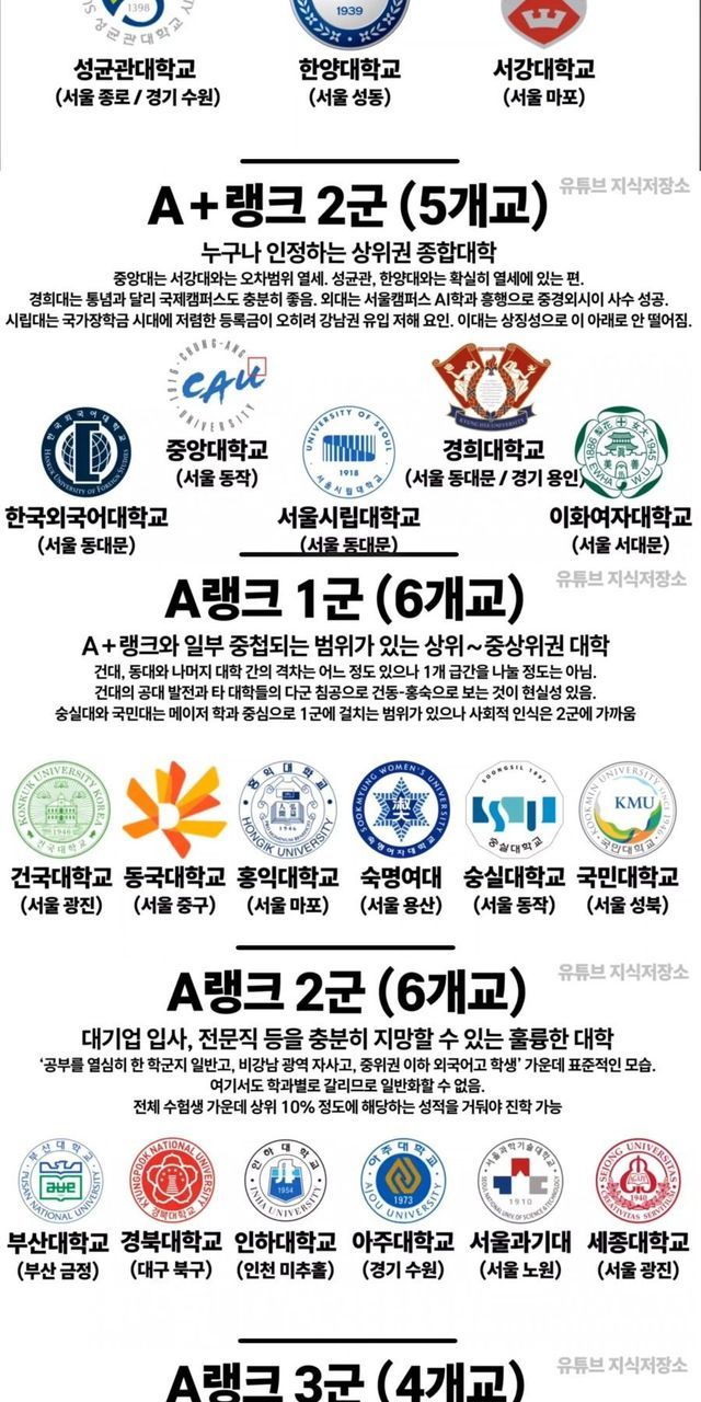 서울대 연세대 고려대 서강대 성균관대 한양대 중앙대 경희대 외대 이화여대 시립대 건국대 동국대 홍익대 숙명여대 아주대 경북대 부산대 인하대 과기대 세종대 단국대 광운대 명지대 항공대 전남대 충남대 인천대 가천대 경기대 한성대 서경대 삼육대