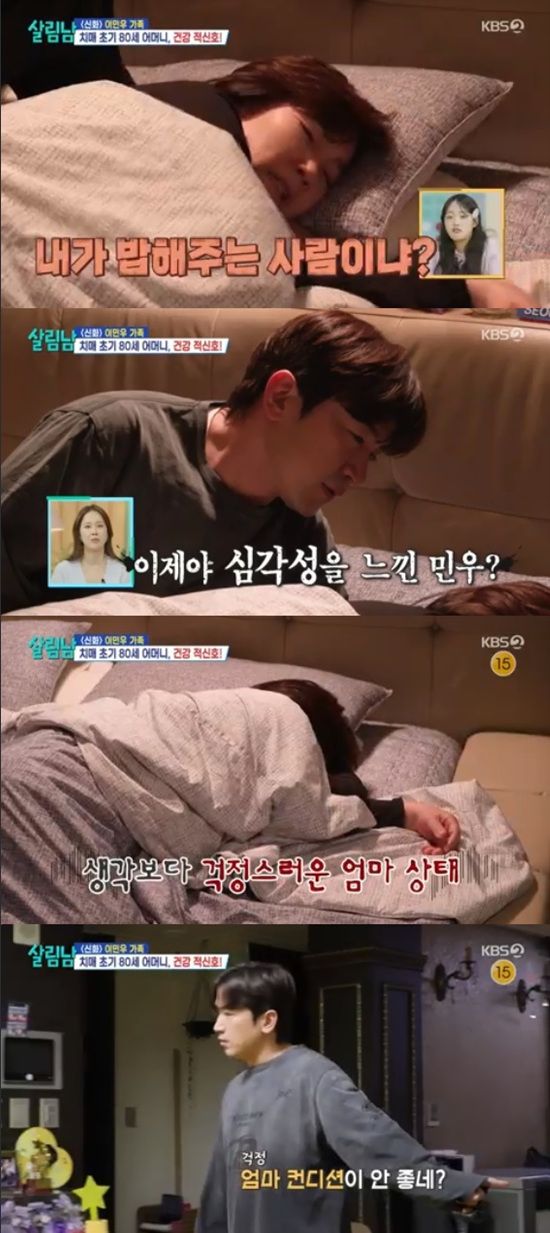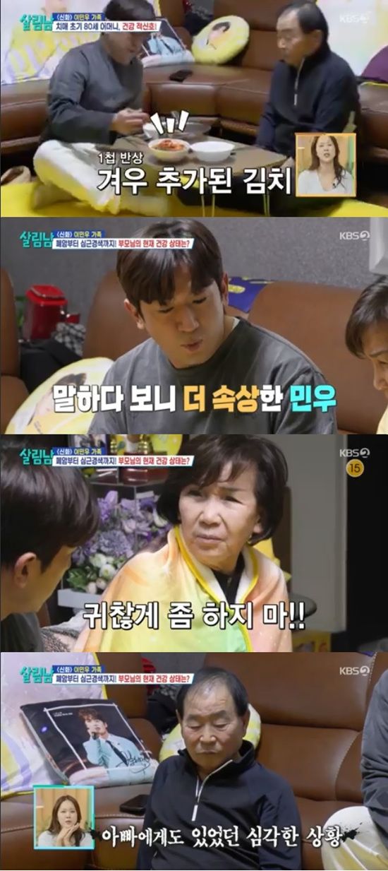 4일 방송된 KBS 2TV '살림하는 남자들 시즌2'에서는 이민우가 어머니의 컨디션 저하를 걱정하는 모습이 전파를 탔다.