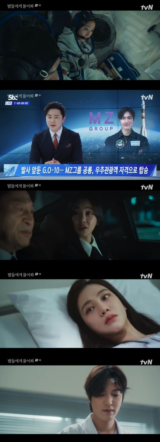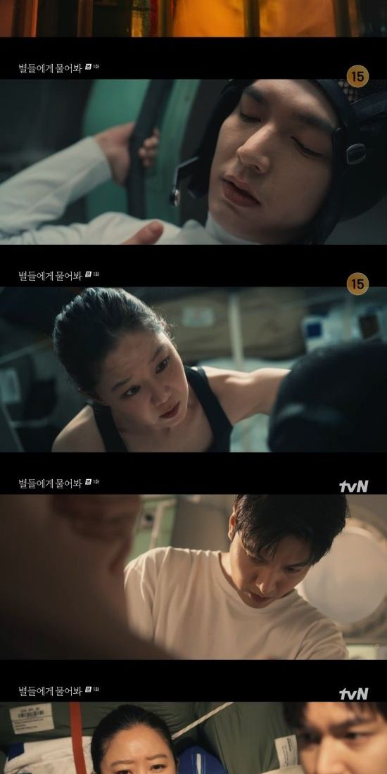 4일 첫 방송된 tvN 새 토일드라마 '별들에게 물어봐' 1회에서는 공룡(이민호 분)이 이브 킴(공효진)과 함께 우주선을 타고 지구를 떠난 모습이 그려졌다.