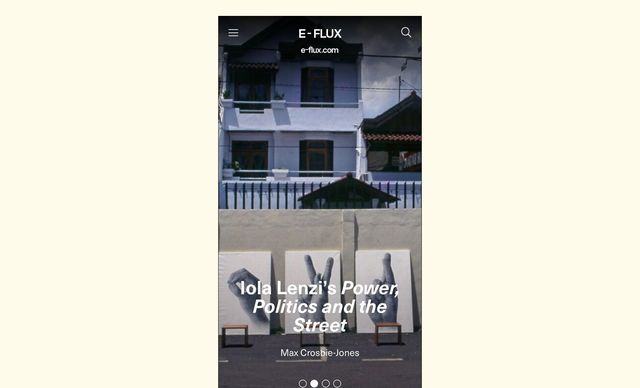 E - FLUX e-flux.com 세계 곳곳의 전시와 미술계 동향을 살펴볼 수 있는 플랫폼이다. 물론 그런 웹사이트야 차고 넘치지만, 이슈의 선택이나 심도, 기고문을 쓰는 아티스트의 면면에서 탁월한 측면이 있다. (아마도 아티스트와 큐레이터의 연구 모임에서 시작해 저널이 되었다는 출발점 때문이 아닐까 싶다.) 개인적으로는 프리즈 같은 플랫폼에서 상업적 미술계의 흐름을 살펴보고 이곳에서 좀 더 심도 깊은 담론을 발견하는 식으로 활용하고 있다. 하지만 가벼운 마음으로 훑어보며 ‘세계가 이렇게 흘러가고 있구나’ 하는 재미를 느끼기에도 좋다. 웹사이트뿐 아니라 메일링 서비스, 스마트폰 앱도 제공하고 있다. 노상호(미술가)