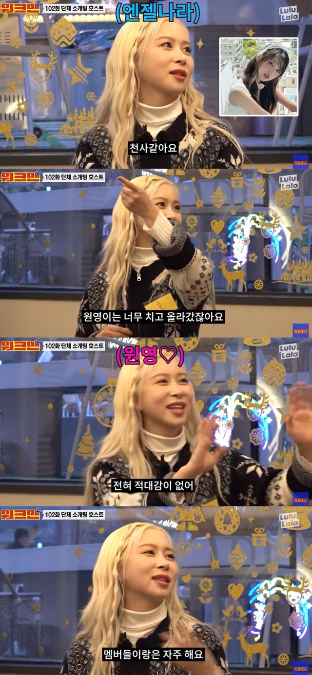 이에 장성규는 "다영이 입장에서는 너무 완벽한 후배가 치고 올라오는 거에 대해서 (어떻게 생각하냐)"고 질문했고, 다영은 "(원영이가) 너무 치고 올라갔다. 전혀 적대감이 없다"며 "멤버들이랑은 (서로) 시기질투 자주한다"고 재치있게 받아쳤다.