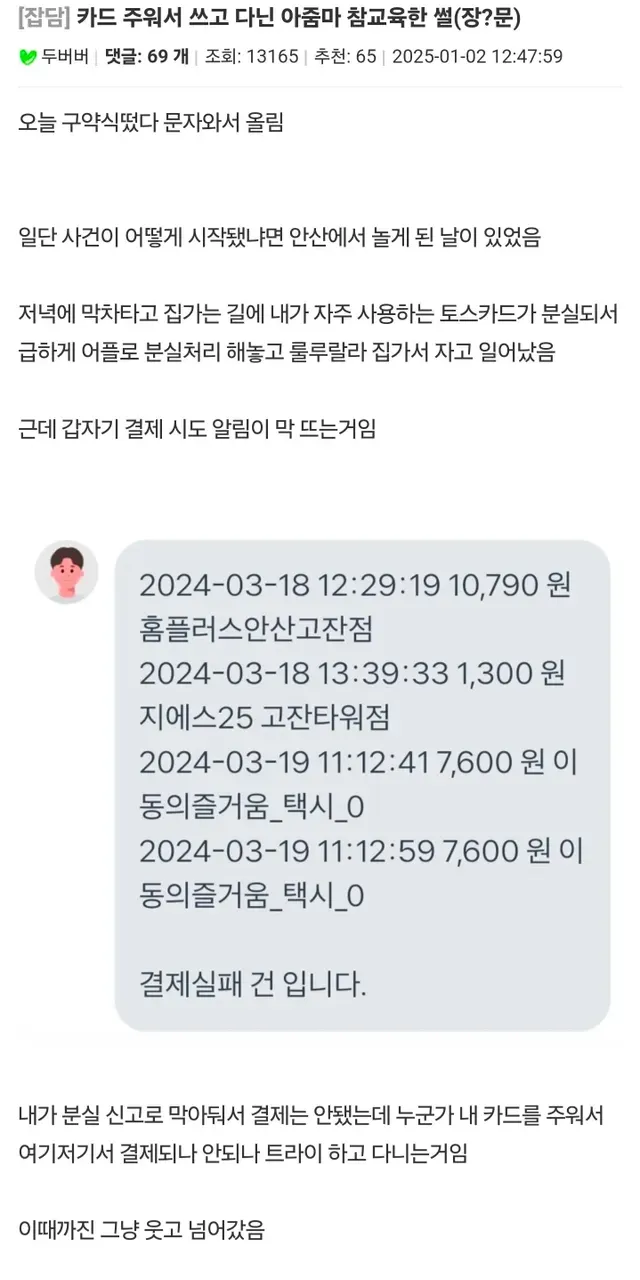 [스압] 카드 주워서 쓰고 다닌 아줌마 참교육한 썰,,