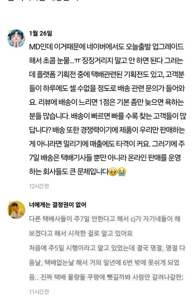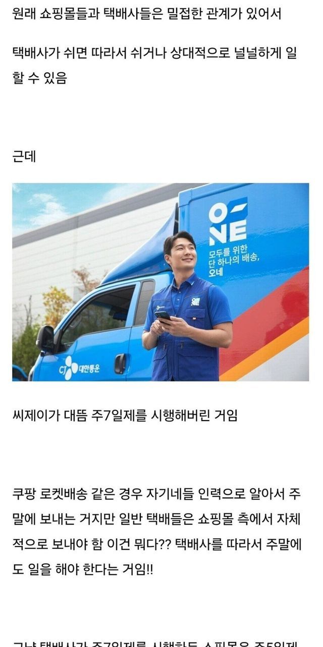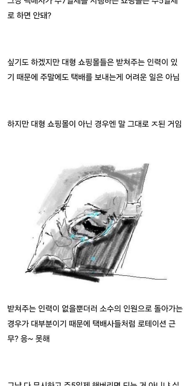 현재 쇼핑몰들 개빡쳤다는 택배 주7일제